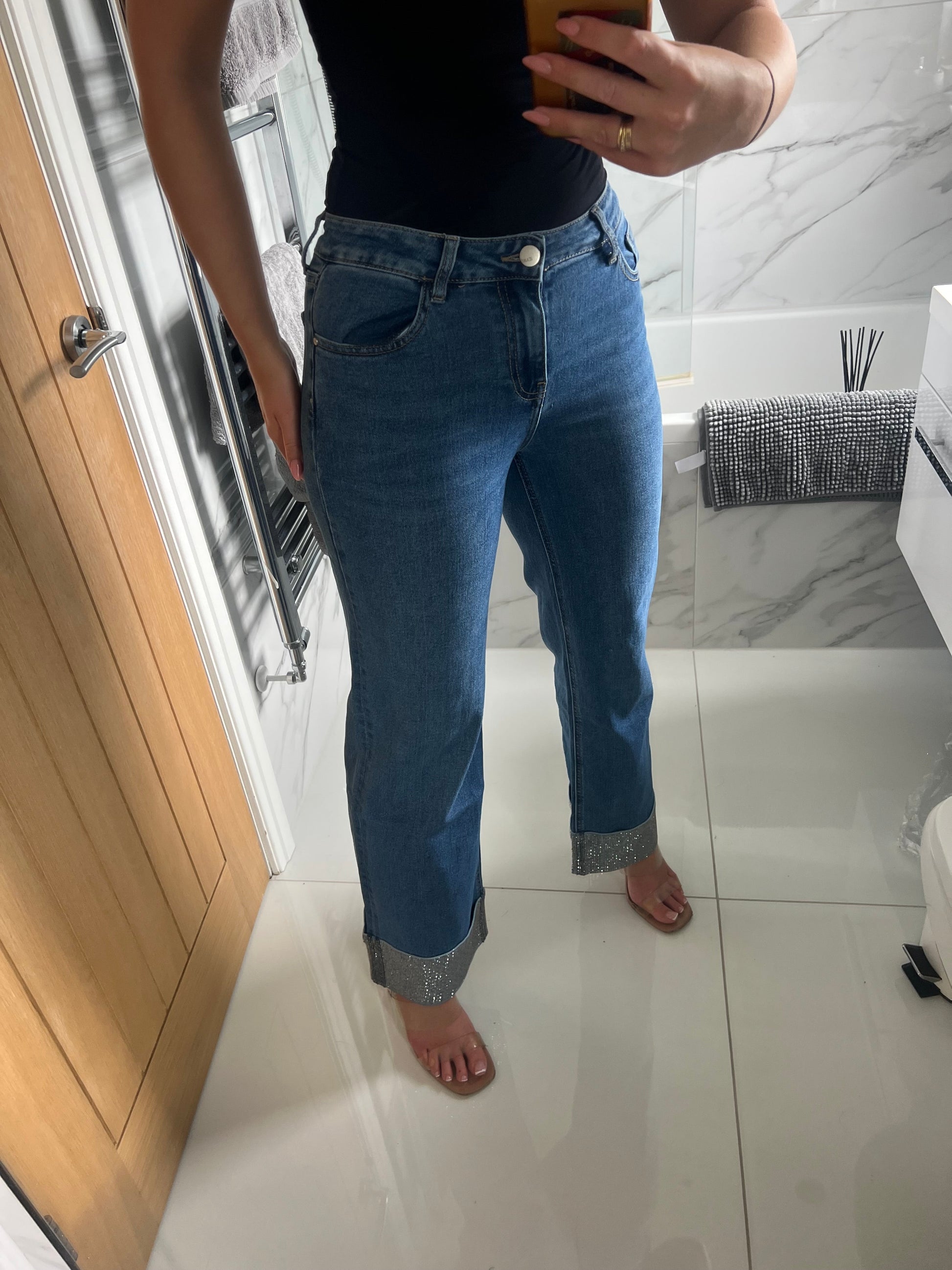 Add a touch of glamour to your everyday denim with our Sparkle Hem Stretch Jeans. Crafted from soft, flexible denim with just the right amount of stretch, they move with you for all-day comfort while sculpting your silhouette. The straight-leg cut keeps them timeless, while the diamanté-embellished turn-up hems bring a subtle flash of sparkle to every step.