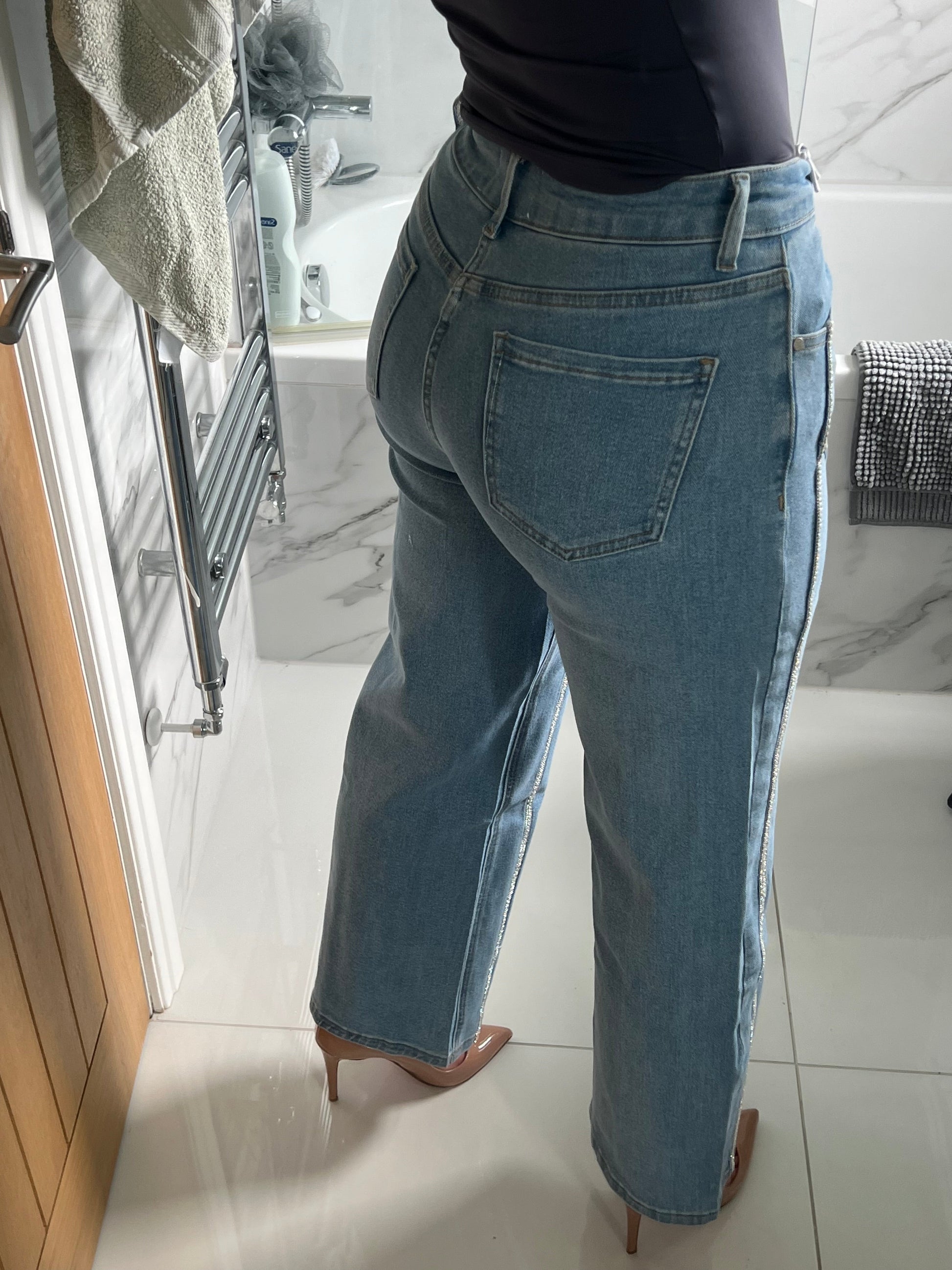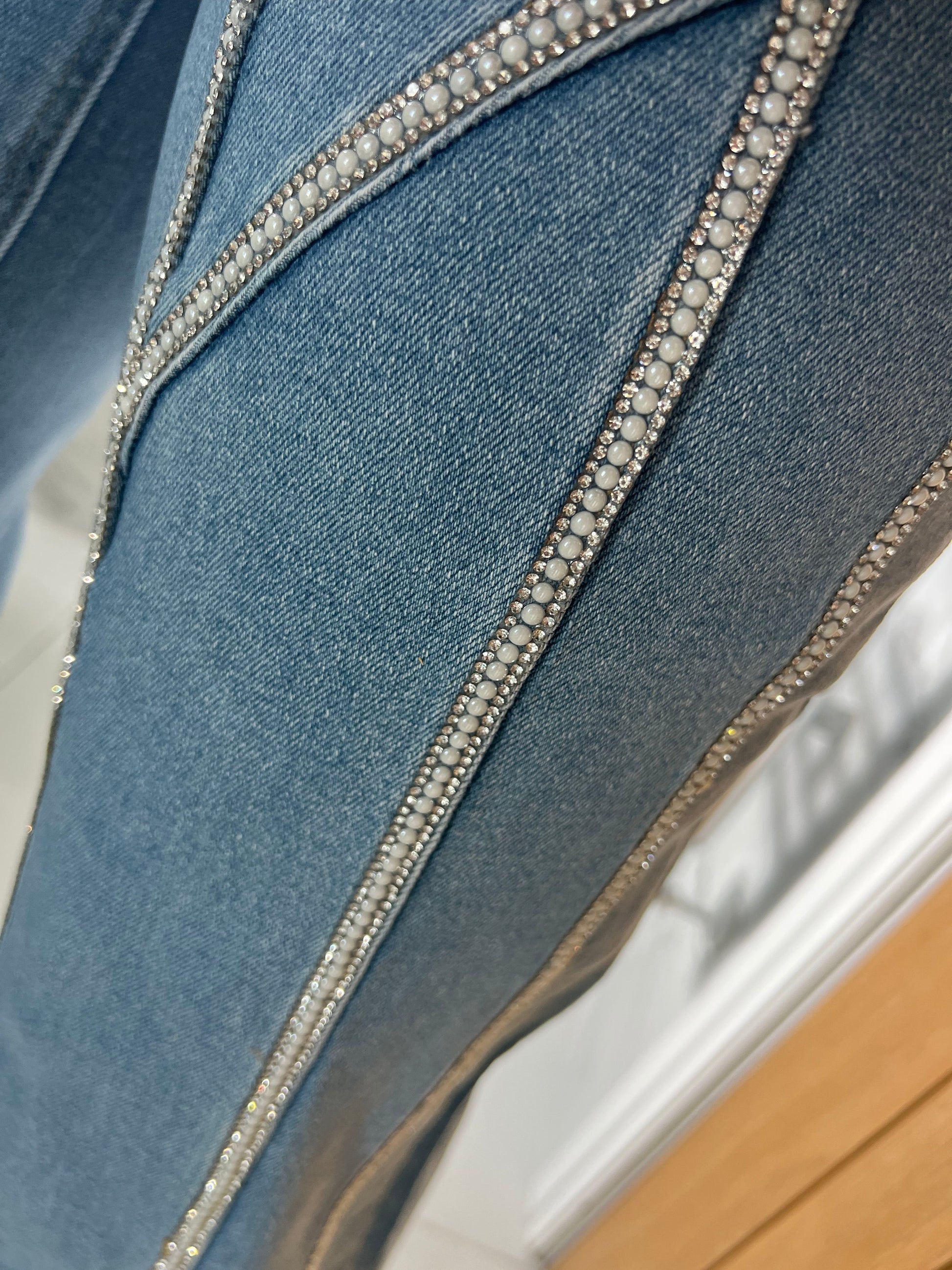 Pearl And Diamanté Detail Wide Leg Jeans